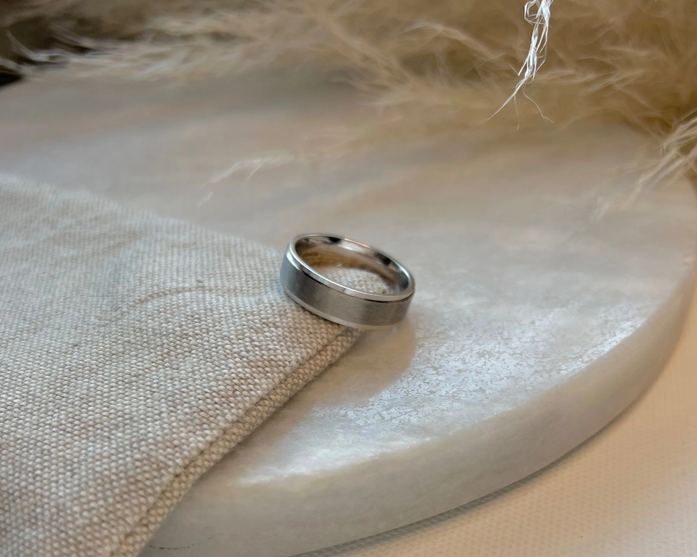 18CT WHITE GOLD SATIN & POLISH FINISHED STEPPED BORDER 6MM WEDDING RING RRP£1450.00NOW£740.00 Ring SizeRCodeFCH61A